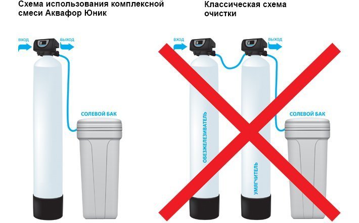 • Использование комплексной смеси Аквафор Юник позволяет снизить эксплуатационные затраты более чем в 2 раза. Смеси Юник могут импользоваться в системах как с ручным, так и с автоматическим клапаном управления.